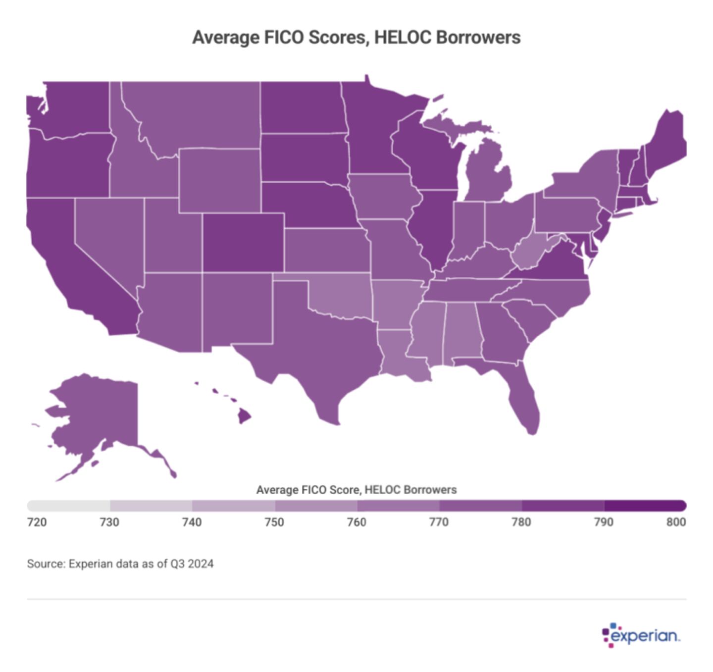 - Good credit score or better: Having at least a good credit score—generally considered a FICO® Score of 670 or better—will ease the application process. Better scores may result in even better financing terms. Indeed, the average FICO® Score among HELOC borrowers in most states is close to 800.