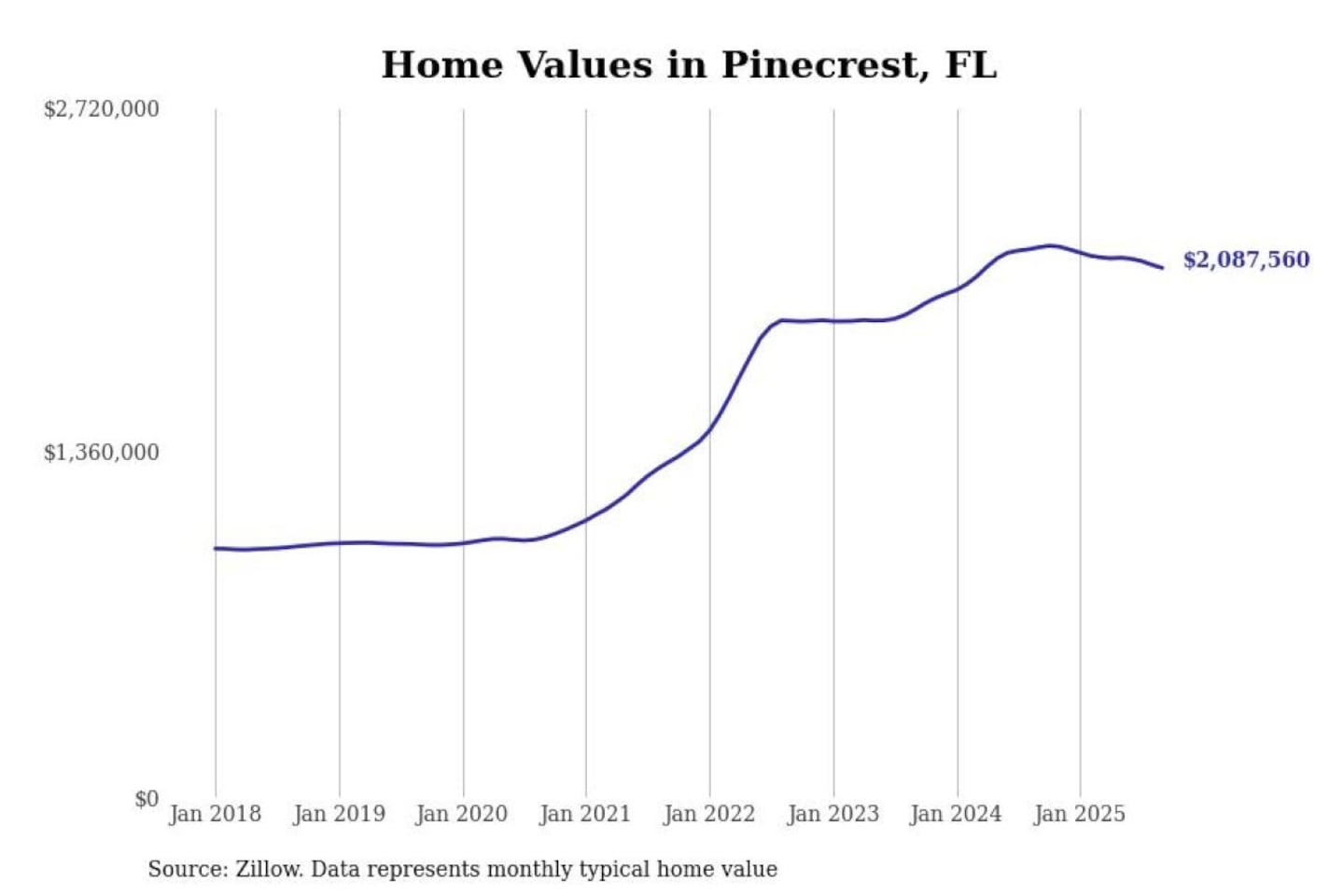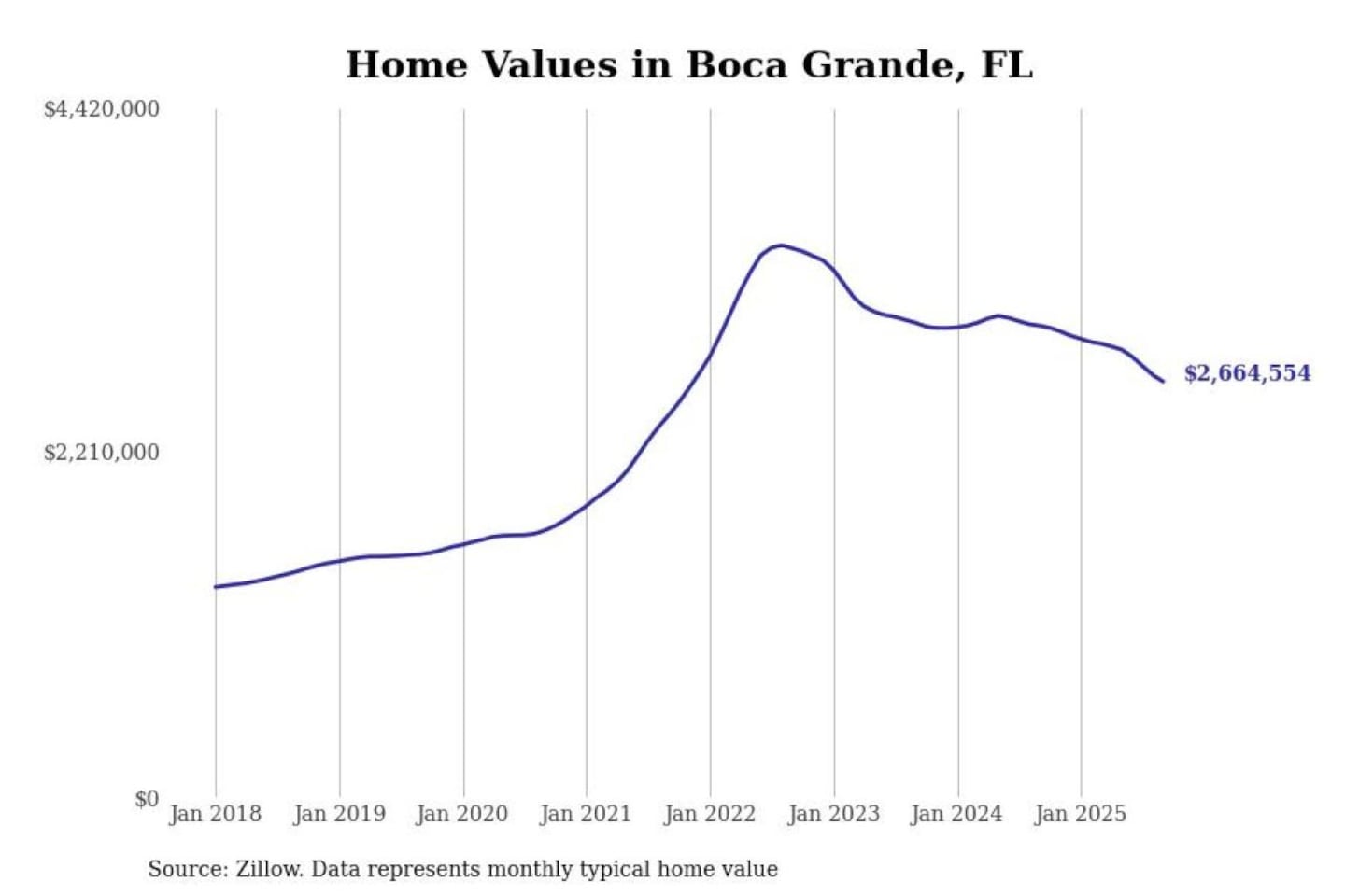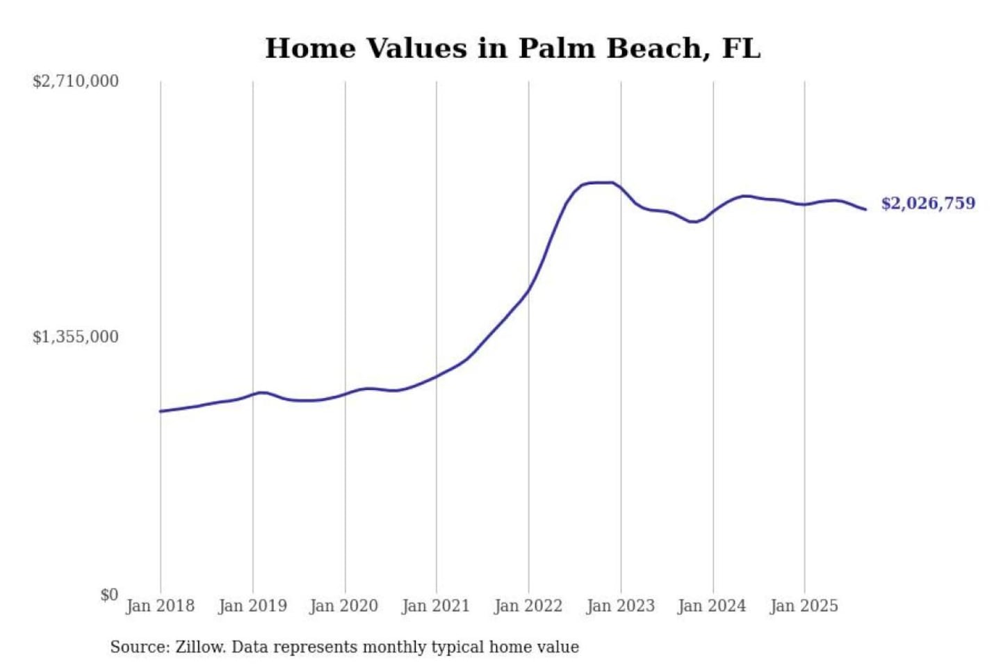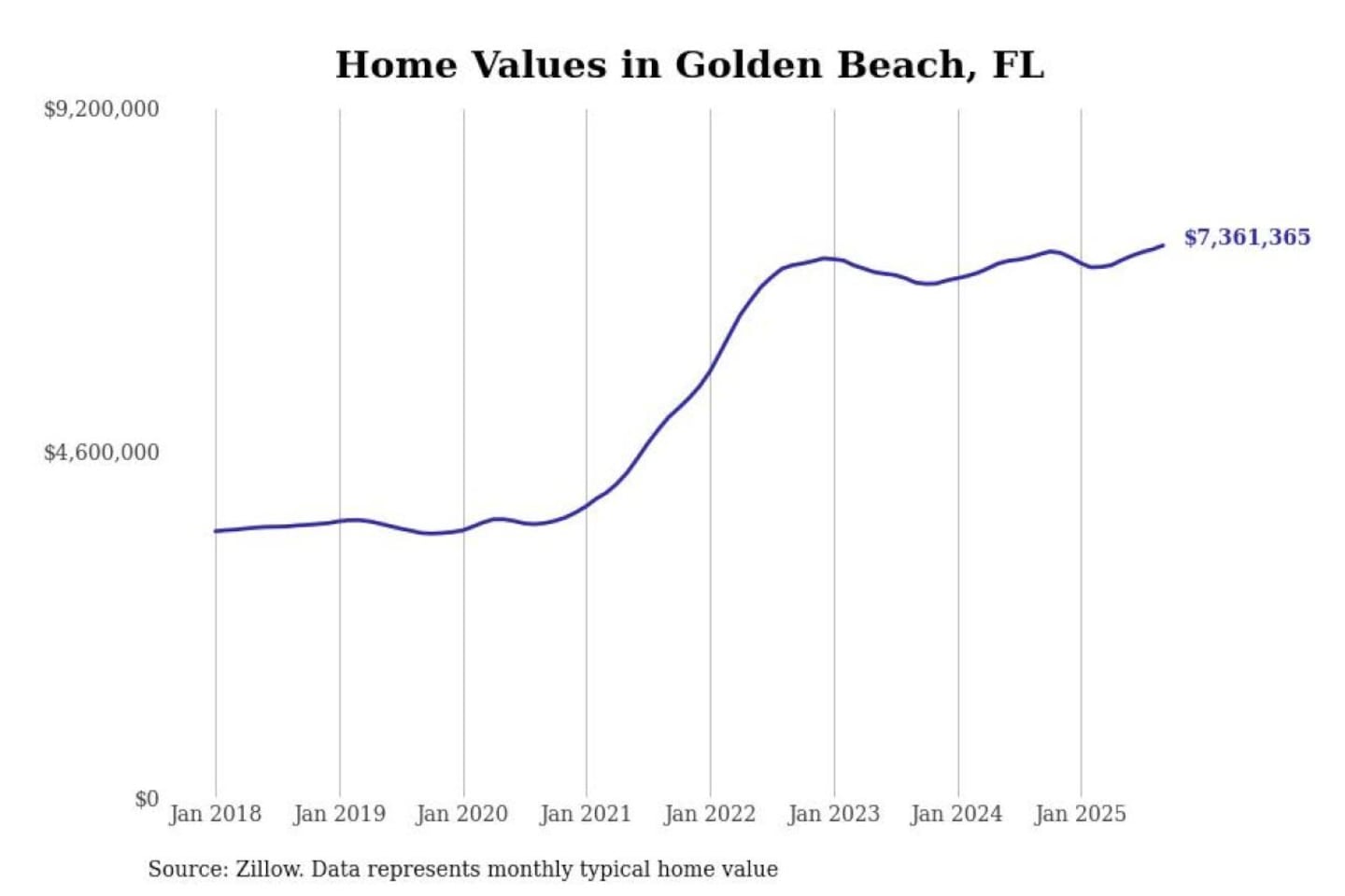 Stacker compiled a list of cities with the most expensive homes in Florida using data from Zillow. Cities are ranked by the Zillow Home Values Index for all homes as of September 2025. The charts in this story were created automatically using Matplotlib.