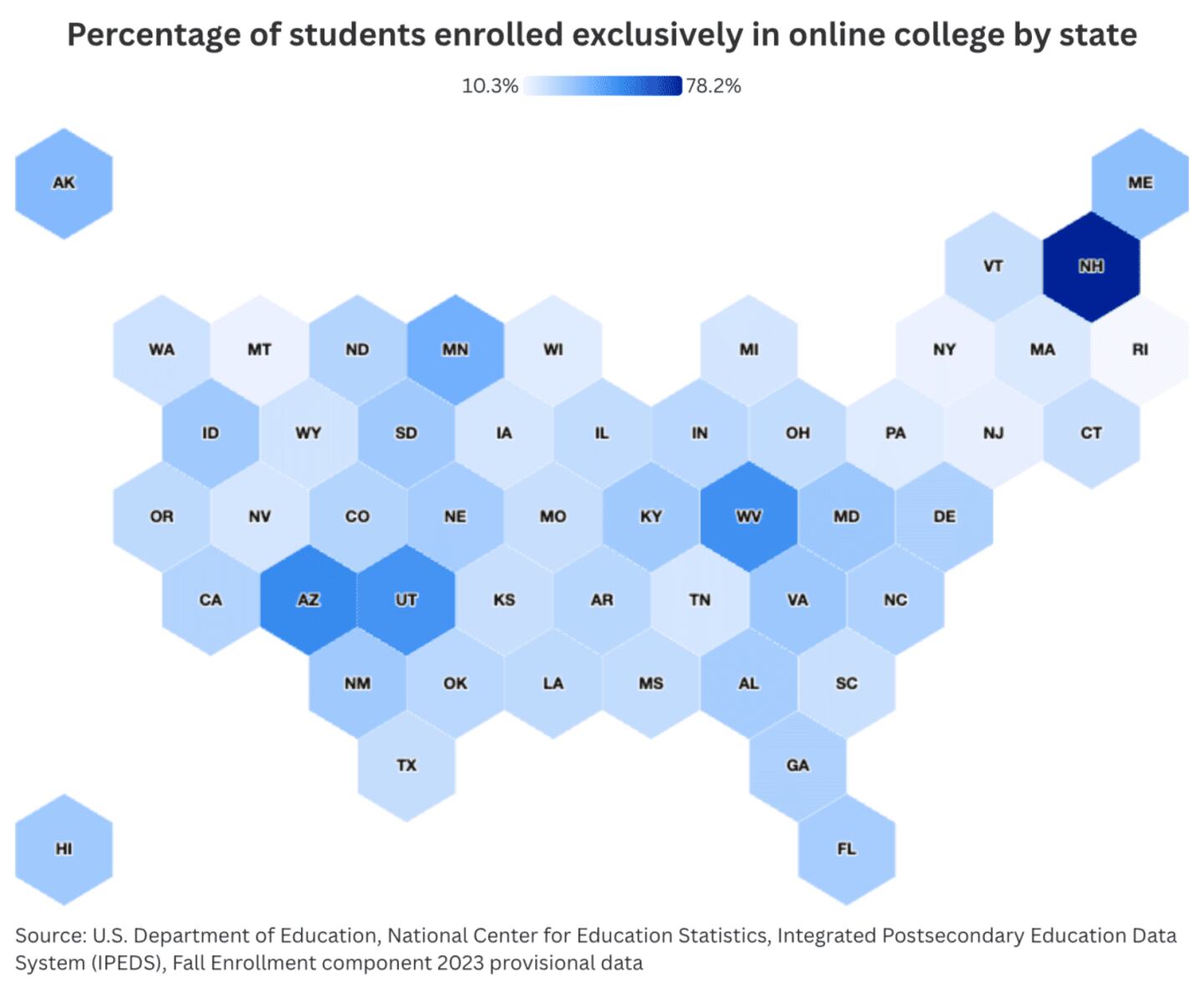 "Exclusively online" students accounted for 25.6% of total enrollments at Title IV institutions during the fall of 2023 in a study conducted by the National Center for Education Statistics, up nearly 10% from the same study published just four years prior, near the start of the pandemic.