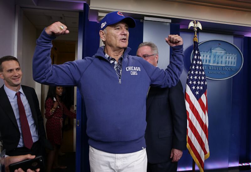 October 2016 WASHINGTON, DC - OCTOBER 21: Comedian Bill Murray gestures as he visits the James Brady Press Briefing Room at the White House October 21, 2016 in Washington, DC. Murray is in Washington to receive the 2016 Mark Twain Prize for American Humor at the Kennedy Center on Sunday. (Photo by Alex Wong/Getty Images) (Alex Wong/Getty Images)