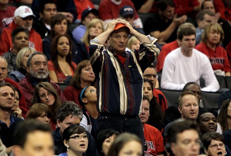 March 2010 LOS ANGELES, CA - MARCH 11: Actor Bill Murray is seen during the Quarterfinals of the Pac-10 Basketball Tournament between the Arizona Wildcats and the UCLA Bruins at Staples Center on March 11, 2010 in Los Angeles, California. UCLA defeated Arizona 75-69. (Photo by Jeff Gross/Getty Images) (Jeff Gross/Getty Images)