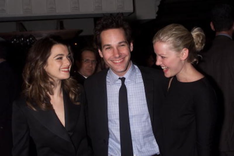 Photos: Paul Rudd through the years 2001: Rachel Weisz, Paul Rudd and Gretchen Mol at the opening night party for Neil LaBute's play "The Shape of Things" at Ernie's in New York City. (Scott Gries/ImageDirect via Getty Images)