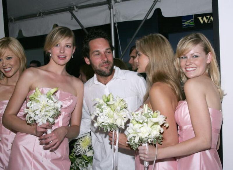 Photos: Paul Rudd through the years 2005: Actor Paul Rudd poses with "bridesmaids" Harriett McClure, Heather Laine, Heidi Bailey and Amelia Nelson at the premiere of "Wedding Crashers" at the Ziegfeld Theatre on July 13, 2005, in New York City. (Evan Agostini/Getty Images)