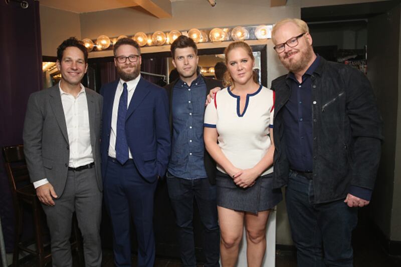 Photos: Paul Rudd through the years 2017: Comedians Paul Rudd, Seth Rogen, Colin Jost, Amy Schumer and Jim Gaffigan back stage at Hilarity for Charity's third annual New York City Variety Show at Webster Hall on June 8, 2017, in New York City. (Robin Marchant/Getty Images for Hilarity for Charity)