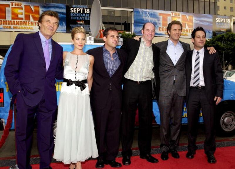 Photos: Paul Rudd through the years 2004: Actors Fred Willard, Christina Applegate, Steve Carell, David Koechner, Will Ferrell and Paul Rudd attend the premiere of the Dreamworks film "Anchorman" on June 28, 2004, at the Mann's Chinese Theater, in Westwood, California. (Vince Bucci/Getty Images)
