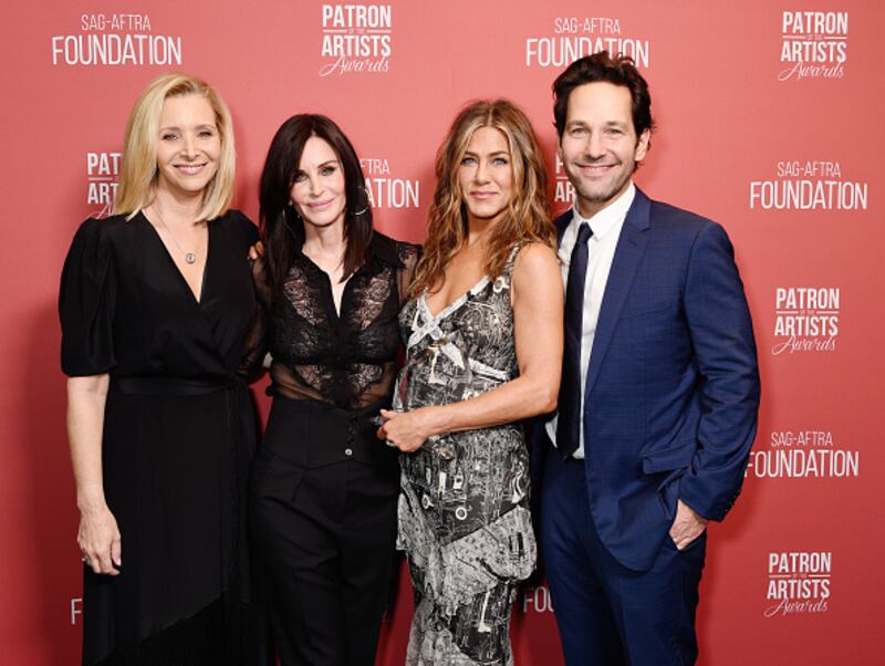 Photos: Paul Rudd through the years 2019: Lisa Kudrow, Courteney Cox, Jennifer Aniston and Paul Rudd attend SAG-AFTRA Foundation's fourth annual Patron of the Artists Awards at Wallis Annenberg Center for the Performing Arts on November 7, 2019, in Beverly Hills, California. (Gregg DeGuire/Getty Images for SAG-AFTRA Foundation)