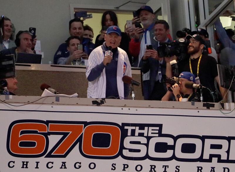 October 2016 CHICAGO, IL - OCTOBER 28: Actor Bill Murray sings "Take Me Out to the Ballgame" in the seventh inning in Game Three of the 2016 World Series between the Chicago Cubs and the Cleveland Indians at Wrigley Field on October 28, 2016 in Chicago, Illinois. (Photo by Jamie Squire/Getty Images) (Jamie Squire/Getty Images)
