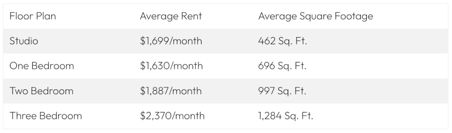- Average One-Bedroom Size: 668 sq. ft.