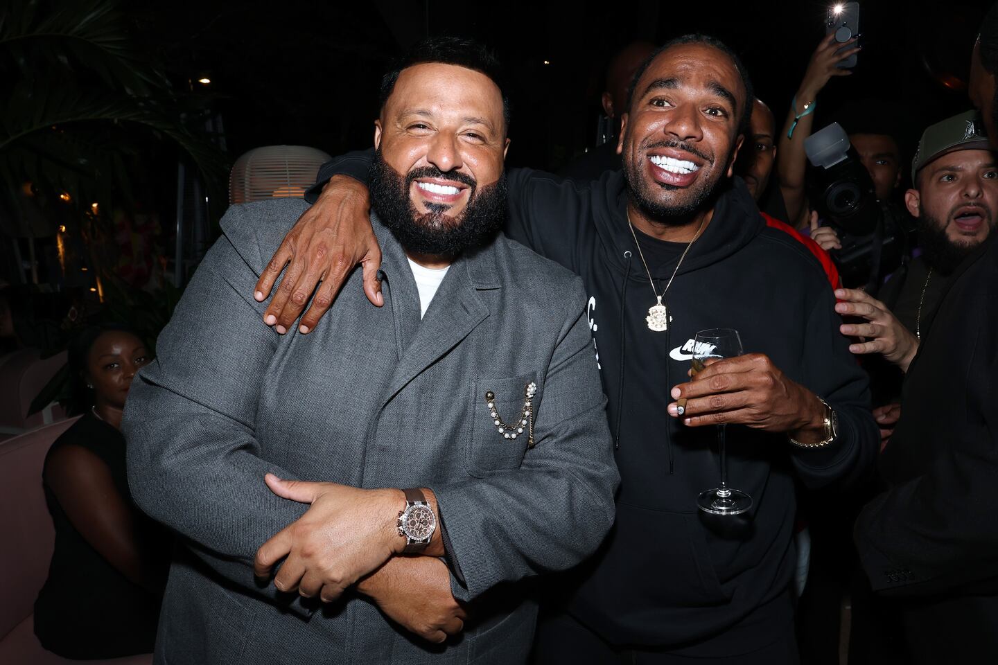 DJ Khaled 50th Birthday Celebration And DJ Khaled x We The Best Foundation Golf Classic Welcome Reception MIAMI, FLORIDA - DECEMBER 03: (L-R) DJ Khaled and N.O.R.E attend DJ Khaled 50th Birthday Celebration And DJ Khaled x We The Best Foundation Golf Classic Welcome Reception at Casadonna on December 03, 2025 in Miami, Florida. (Photo by Jamie McCarthy/Getty Images for We The Best) (Jamie McCarthy/Getty Images for We The Best)