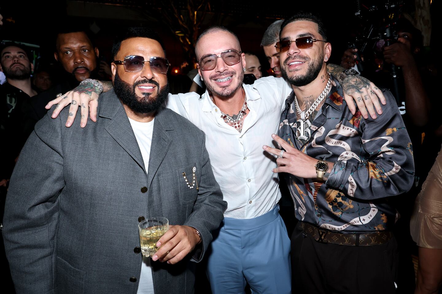 DJ Khaled 50th Birthday Celebration And DJ Khaled x We The Best Foundation Golf Classic Welcome Reception MIAMI, FLORIDA - DECEMBER 03: (L-R) DJ Khaled, J Balvin and Ryan Castro attend DJ Khaled 50th Birthday Celebration And DJ Khaled x We The Best Foundation Golf Classic Welcome Reception at Casadonna on December 03, 2025 in Miami, Florida. (Photo by Jamie McCarthy/Getty Images for We The Best) (Jamie McCarthy/Getty Images for We The Best)