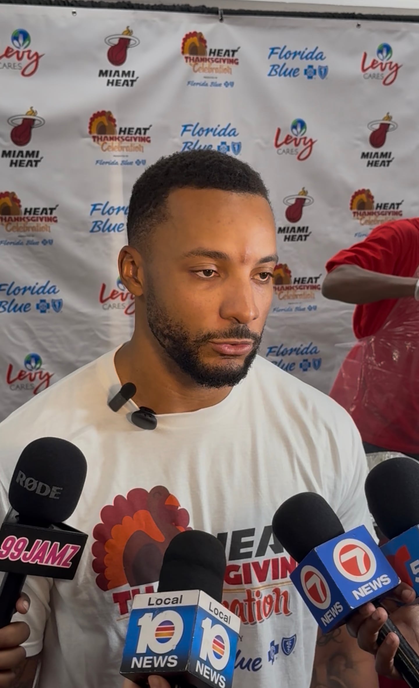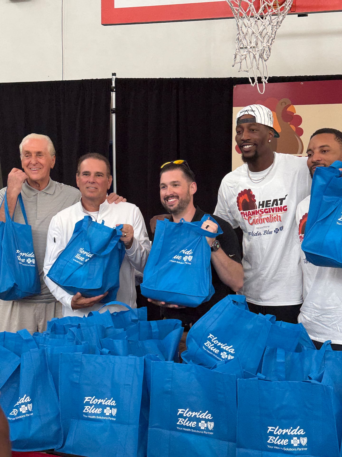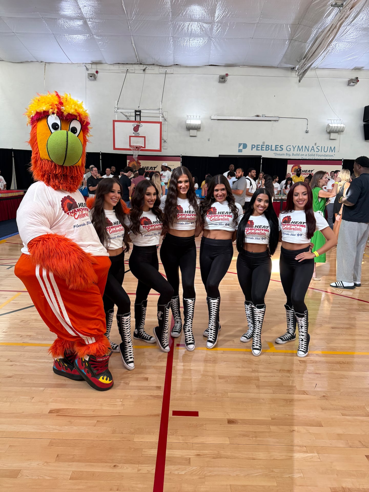 The Miami HEAT hosted their 34th Annual HEAT Thanksgiving Celebration, presented by Florida Blue at the Miami Rescue Mission on Tuesday November 18th, 2025. The HEAT Group, in collaboration with the Caring Place @ Miami Rescue Mission, Inc., tipped-off the Thanksgiving holiday with a block-party to help distribute approximately 600 Thanksgiving baskets to underserved families and provide hot meals to 450 residents of the Miami Rescue Mission, an organization that provides various services to the homeless and those in need throughout Miami-Dade County.